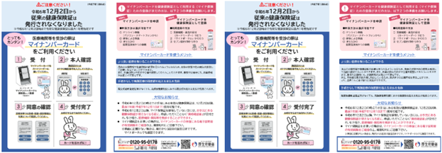 令和7年12月2日から受付でマイナ保険証(マイナンバーカードもしくはスマホ保険証)もしくは持っていない人に発行される資格確認書の提示が必要になります。ご留意ください。
